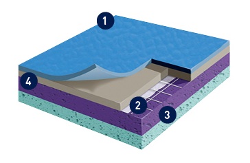 • Superficie D-Max: capa de uso vinílica de 2 mm de espesor, calandrada y multicapa, reforzada con doble fibra de vidrio.