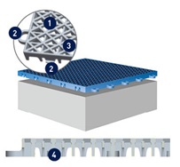Diseñado para colocar sobre superficies de hormigón o asfalto y transformarlas en coloridas superficies de juego en un abrir y cerrar de ojos.